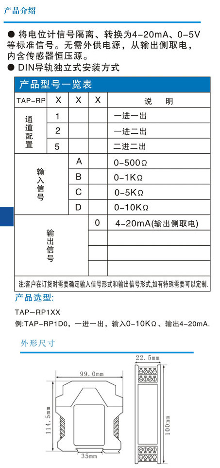 TAP-RP1A0,TAP-RP1B0,TAP-RP2C0,TAP-RP2D0,TAP-RP5A0,TAP-RP,無(wú)源型電位計(jì)信號(hào)隔離變送器