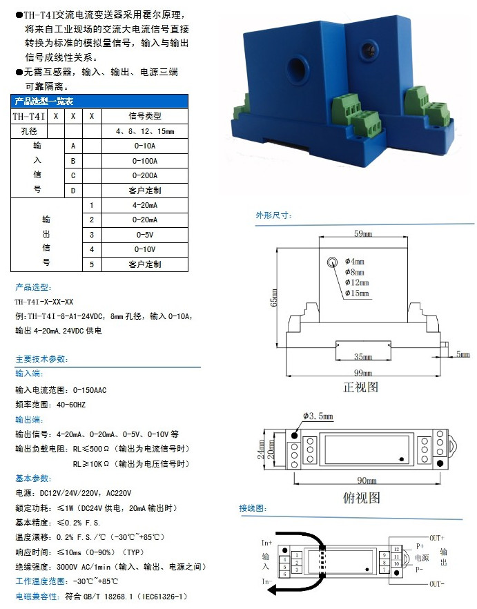 TH-T41-4-A1,TH-T41-8-B2,TH-T41-12-C3,TH-T41-8-A1-24VDC,TH-T41,交流電流變送器