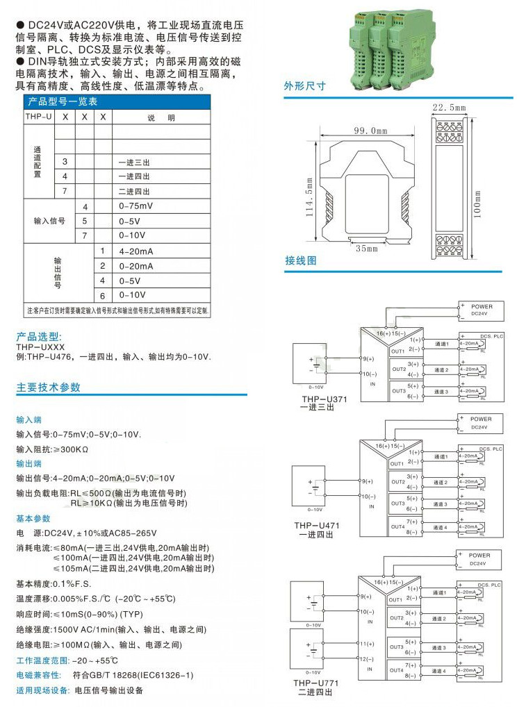 THP-U341,THP-U352,THP-U374,THP-U446,THP-U451,THP-U476,THP-U552,THP-U,電壓輸入隔離器