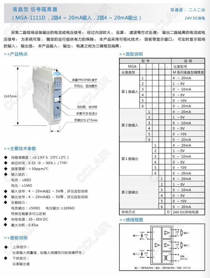 MGA-1132D,MGA-2463D,MGA-3411D,MGA-4535D,MGA-5246D,MGA-6665D,MGA-1111D,液晶型信號隔離器