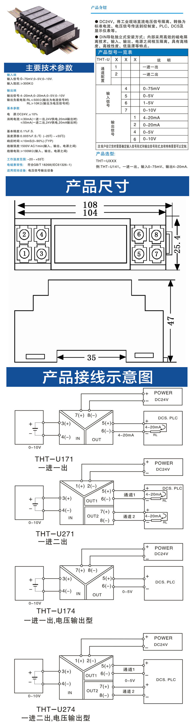THT-U141,THT-U162,THT-U174,THT-U246,THT-U254,THT-U266,THT-U276,THT-U,信號隔離器