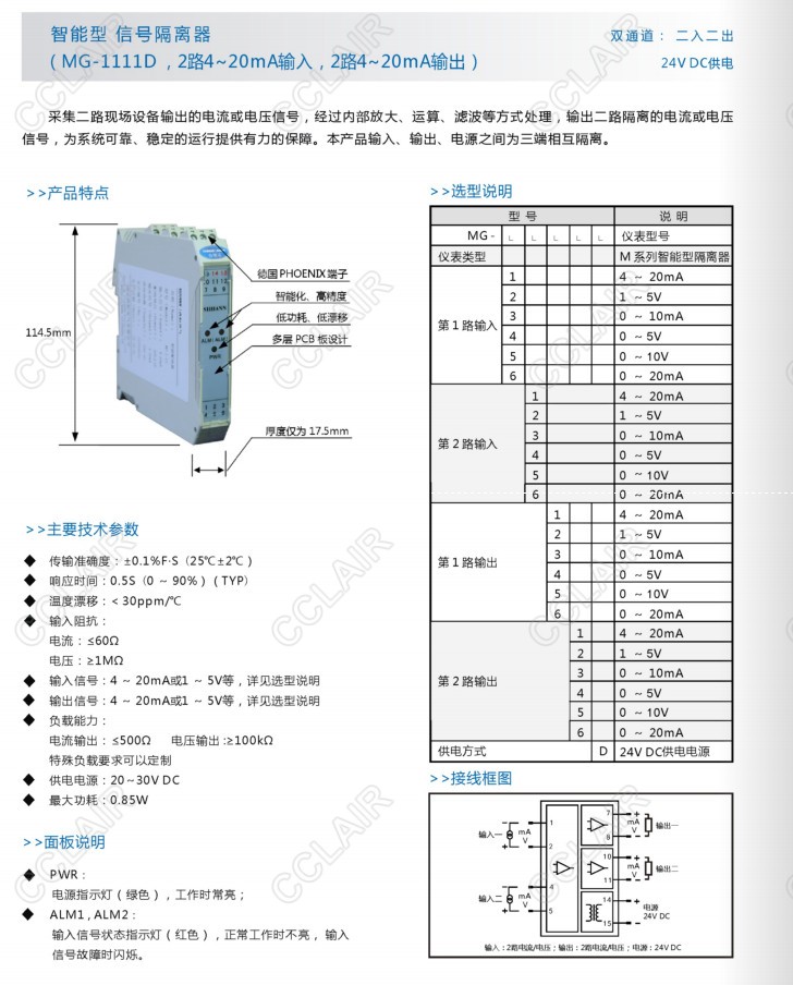 MG-1132D,MG-2463D,MG-2625D,MG-3411D,MG-4535D,MG-5246D,MG-6665D,MG-1111D,信號隔離變送器