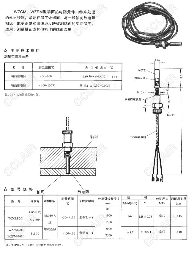WZCM-201,WZPM-201,WZPM-201B,WZCM,WZPM,端面熱電阻