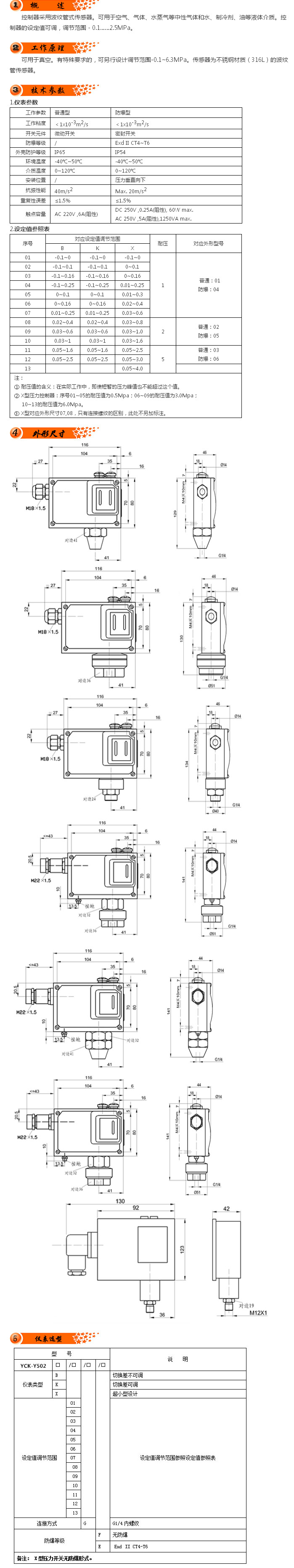 YCK-Y502B,YCK-Y502K,YCK-Y502X,YCK-Y502,通用型壓力控制器