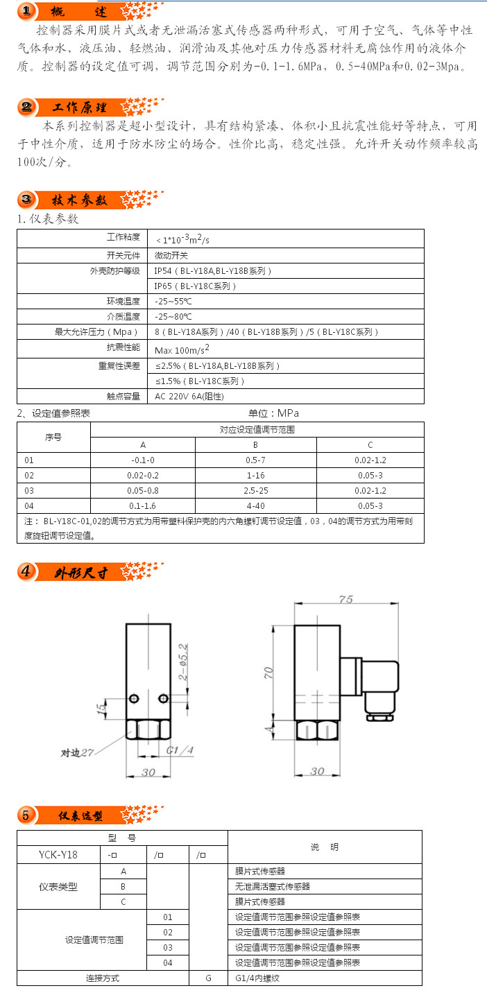 YCK-Y18-A,YCK-Y18-B,YCK-Y18-C,YCK-Y18,小巧型壓力控制器