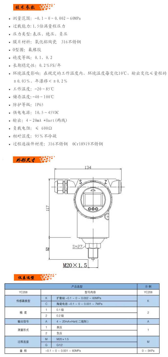 YC208K,YC208C,YC208,壓力變送器