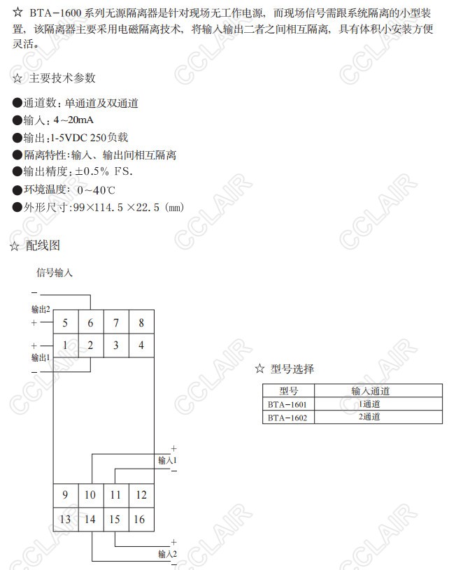 BTA-1601,BTA-1602,BTA-1600,無源隔離器