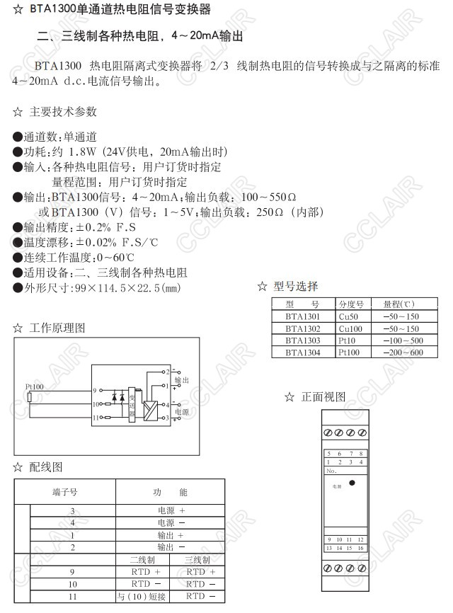 BTA1300,BTA1301,BTA1302,BTA1303,BTA1304,BT(KS)A1300,熱電阻信號(hào)變送器