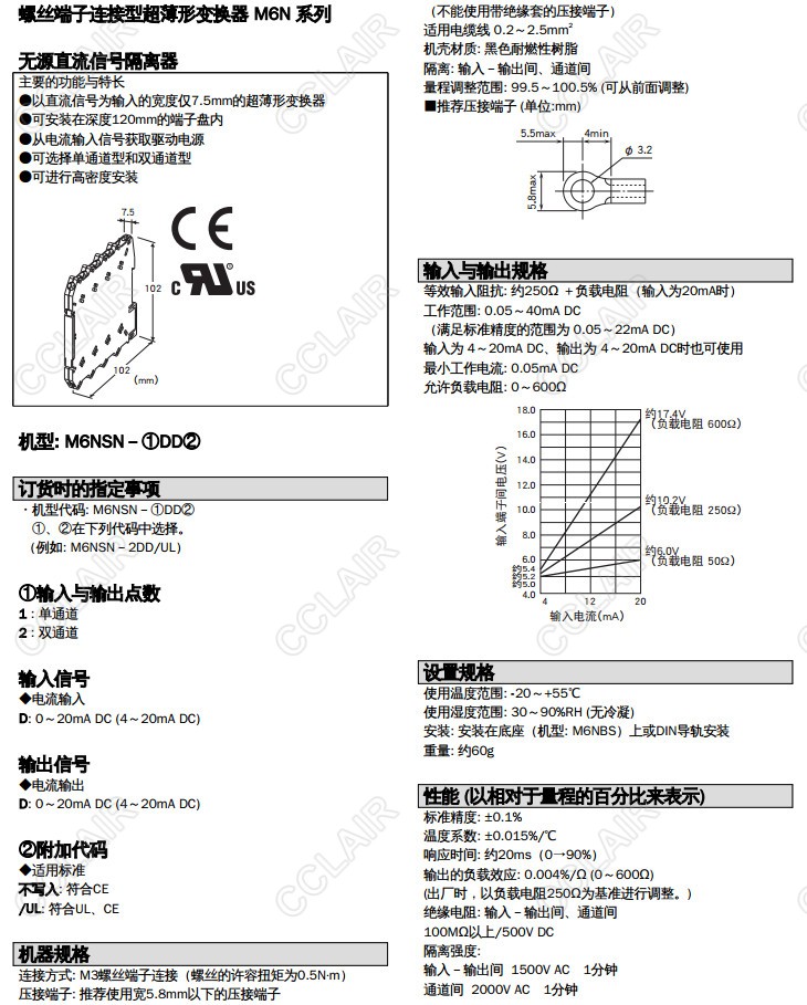 M6NSN-1DD,M6NSN-2DD,M6NSN-1DD/UL,M6NSN-2DD/UL,M6NSN,無源直流信號(hào)隔離器