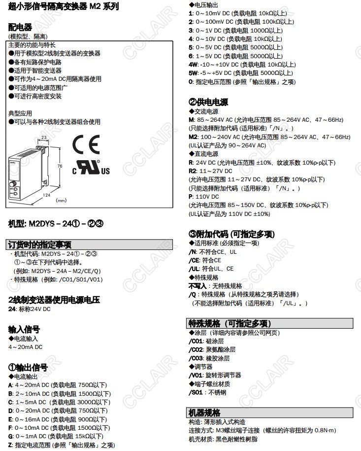 M2DYS-24A-M2,M2DYS-24A-M2/CE,M2DYS-24A-M2/Q,M2DYS-24,M2DYS,信號(hào)隔離變換器