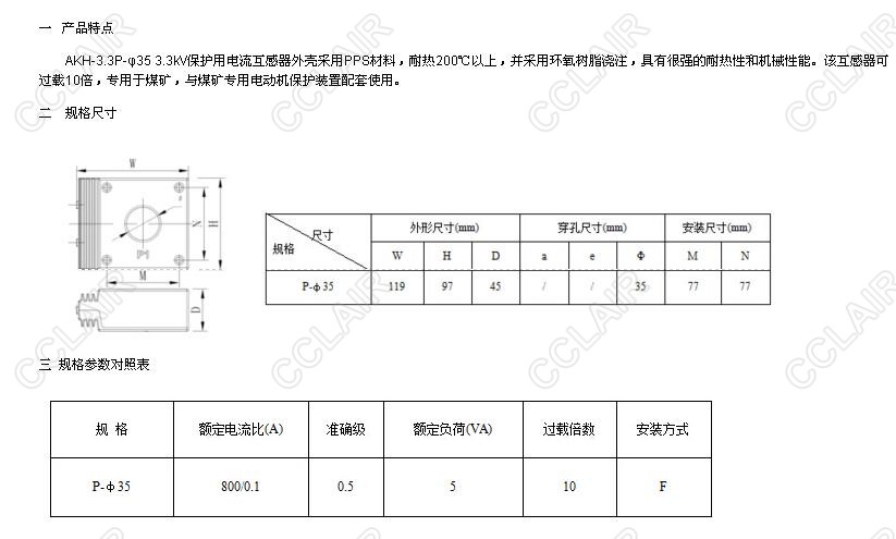 AKH-3.3P-φ35,中壓電動機保護專用電流互感器