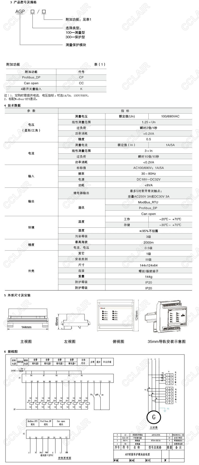AGP測量保護模塊,采用最新的32位單片機技術(shù),具有抗干擾能力強、工作穩(wěn)定可靠、數(shù)字化、智能化、網(wǎng)絡(luò)化等特點。通過檢測線路的電流、電壓、頻率等參量,實現(xiàn)線路的測量及保護。該模塊可具有RS485遠程通訊接口、Modbus-RTU、Profibus-DP、Can Open通訊接口、開關(guān)量輸入、繼電器輸出等功能,方便與PLC、工控機等工控設(shè)備組成網(wǎng)絡(luò)系統(tǒng),實現(xiàn)線路運行的遠程監(jiān)控。