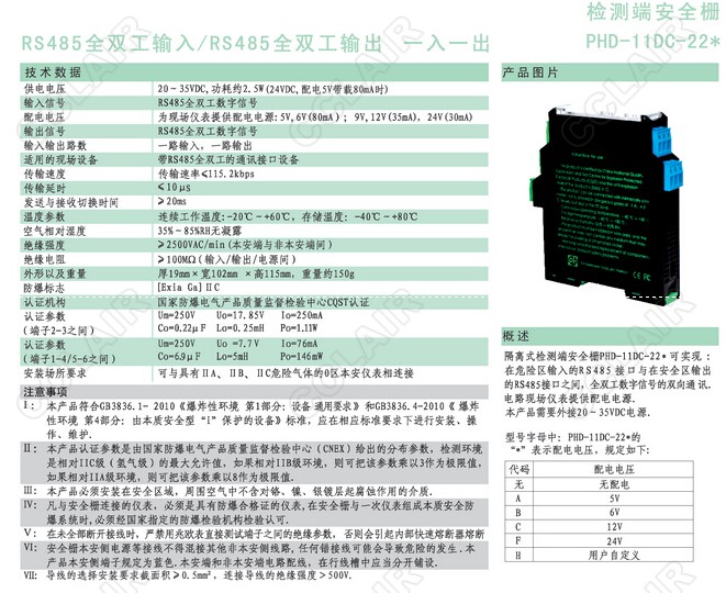 PHD-11DC-22A,PHD-11DC-22B,PHD-11DC-22C,PHD-11DC-22F,PHD-11DC-22H檢測端安全柵