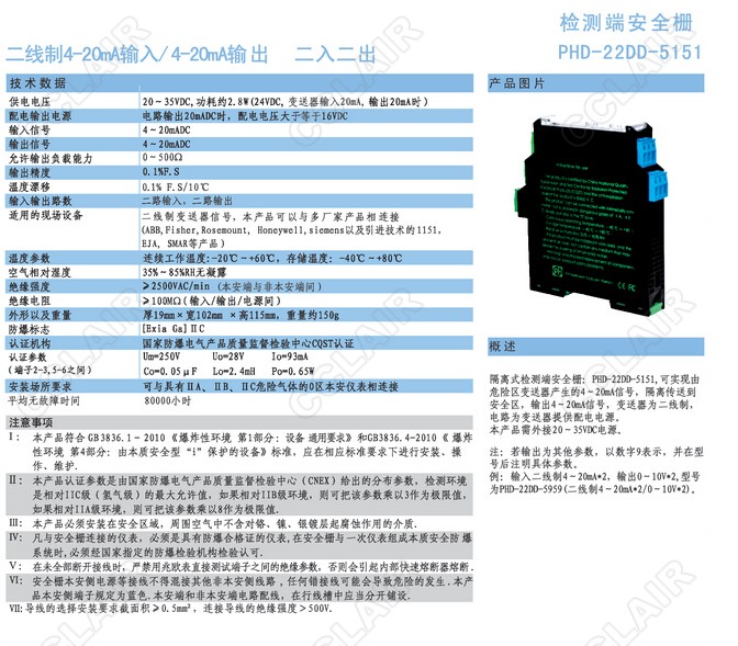 PHD-22DD-5151檢測(cè)端安全柵