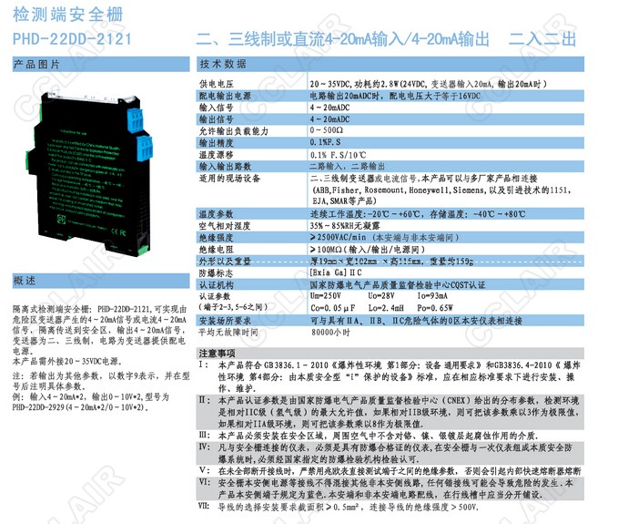 PHD-22DD-2121檢測(cè)端安全柵