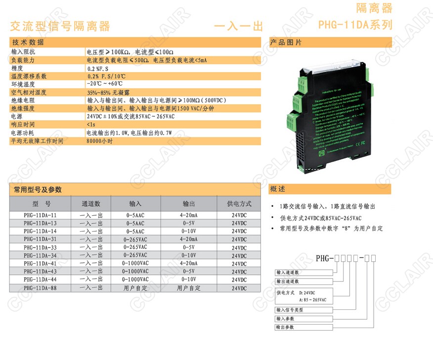 PHG-11DA-11,PHG-11DA-13,PHG-11DA-14,PHG-11DA-31,PHG-11DA-33,PHG-11DA-34,PHG-11DA-41,PHG-11DA-43,PHG-11DA-44,PHG-11DA-88交流型信號(hào)隔離器