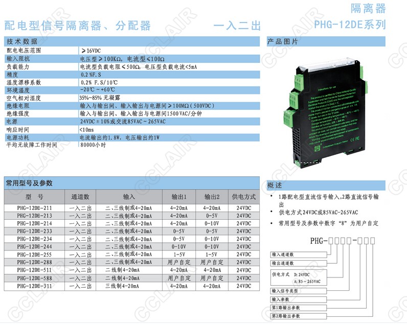 配電型信號(hào)隔離器PHG-12DE-211,PHG-12DE-213,PHG-12DE-214,PHG-12DE-233,