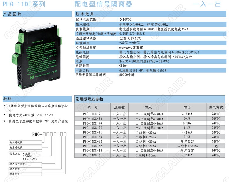 PHG-11DE-21,PHG-11DE-23,PHG-11DE-24,PHG-11DE-25,PHG-11DE-51,PHG-11DE-53,PHG-11DE-58,PHG-11-NE-52,PHG-11DE-28,PHG-11DE-31 配電型信號(hào)隔離器