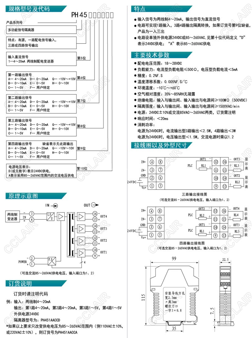 PH451AACCA,PH451AACCD,PH-45,有源配電型多路信號隔離分配器