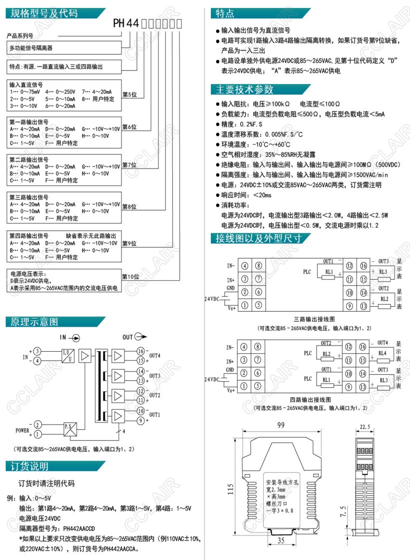 PH441ACB,PH441BGC,PH442AACCA,PH442AACCD,PH-44,有源直流型多路信號(hào)隔離分配器