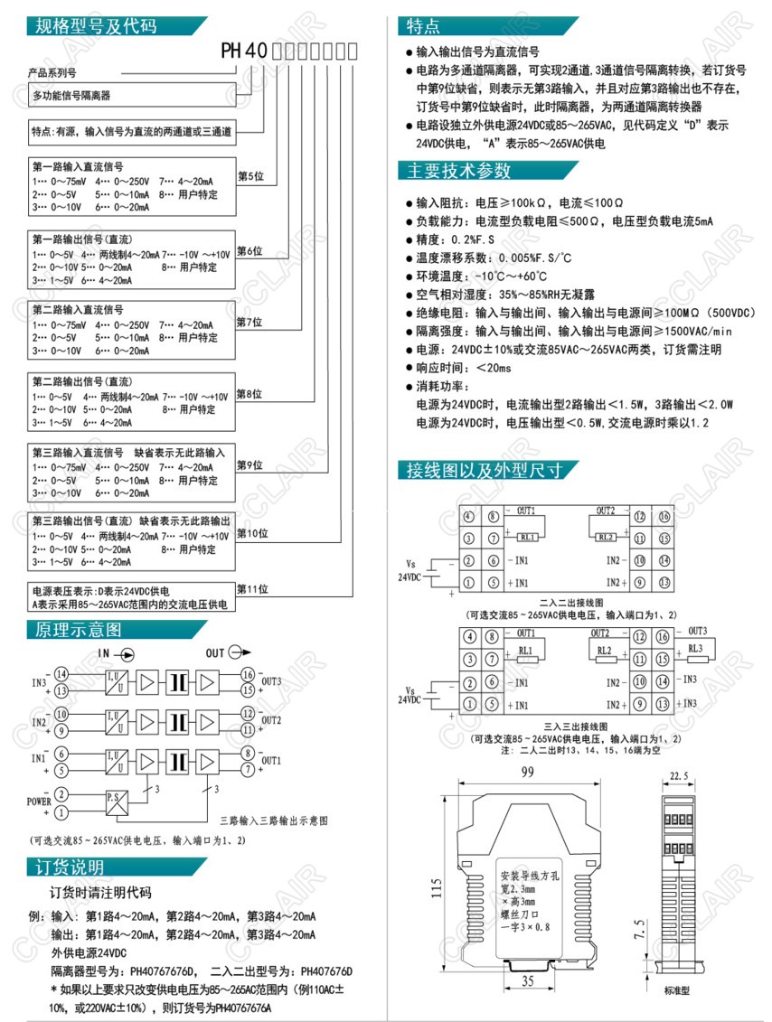 PH40767676A,PH40767676D,PH407676D,PH-40,有源直流型多通道信號(hào)隔離器