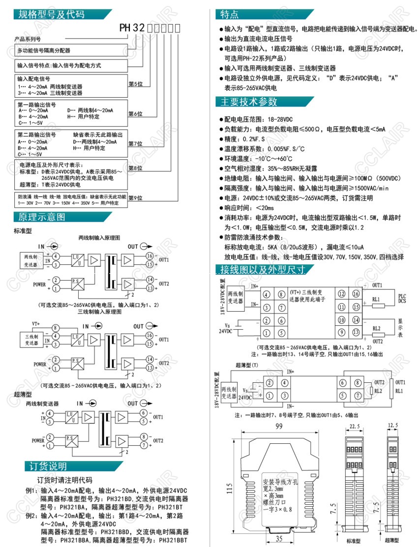 PH-321,PH-323,PH-321BD,PH-321BA,PH-321BT,PH-321BBD,PH-321BBA,PH-321BBT,PH-32,配電型信號(hào)隔離器 |