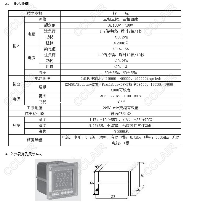 1、 ACR220EG電力儀表特點