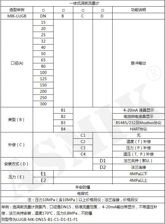 MIK-LUGB-MK-DN15-B1-C1-D1-E1-F1,MIK-LUGB渦街流量計