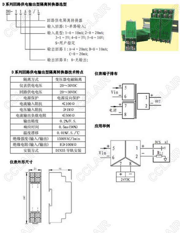 DH-11A0/L,DH-11B0/L,DH-14A0/L,DH-14B0/L,DH-15C0/L,回路供電輸出型隔離轉(zhuǎn)換器