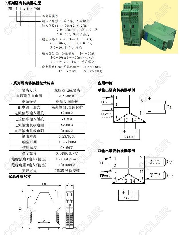 FH-11A0,FH-12B0,FH-13C0,FH-14D0,FH-15E0,FH-16F0,FH-11A0/Y00,單回路隔離轉(zhuǎn)換器