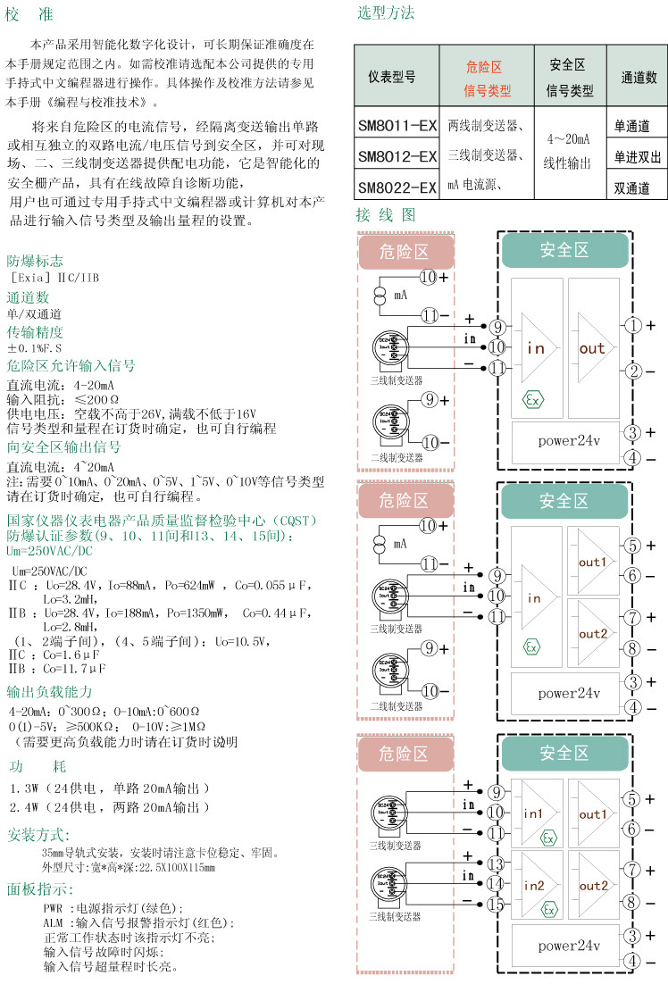 SM8011-EX,SM8012-EX,SM8022-EX,SM,電流輸入檢測端隔離安全柵