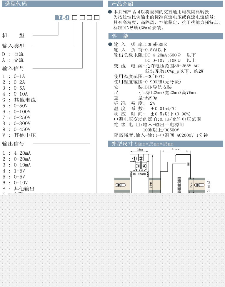DZ-9D1,DZ-9D2,DZ-9A2,DZ-9A3,DZ-9A8,DZ-9A9,DZ-9AV,DZ-9D3,DZ-9,電流變送越限報警器