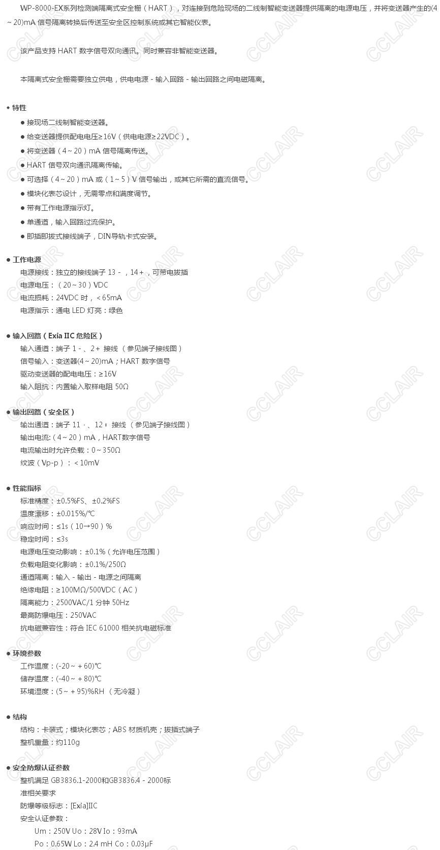 WP-8041-EX,檢測端隔離式安全柵(HART)