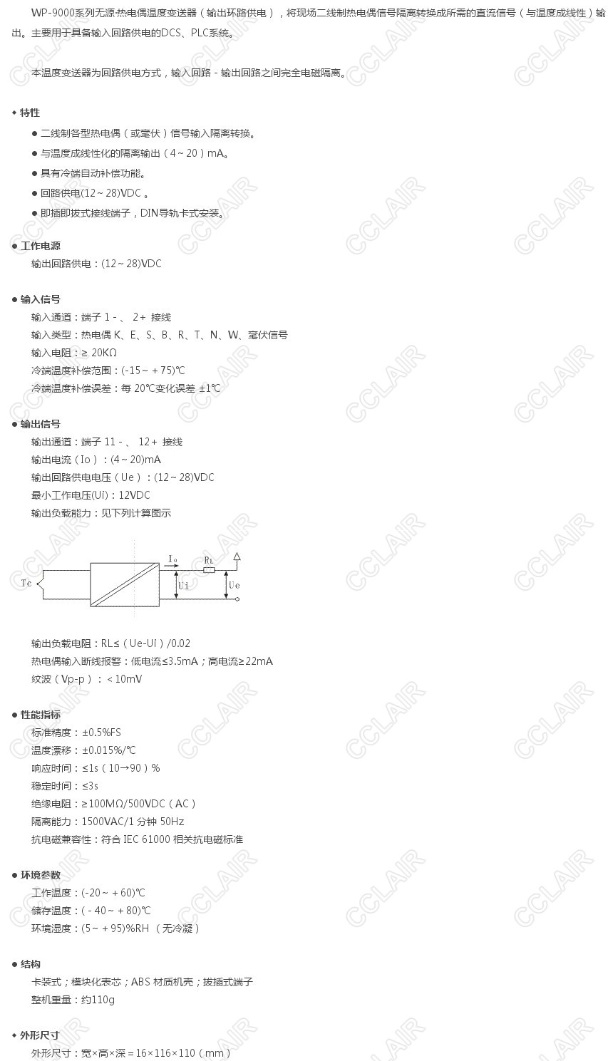 WP-9062,無源熱電偶溫度變送器(輸出環(huán)路供電)