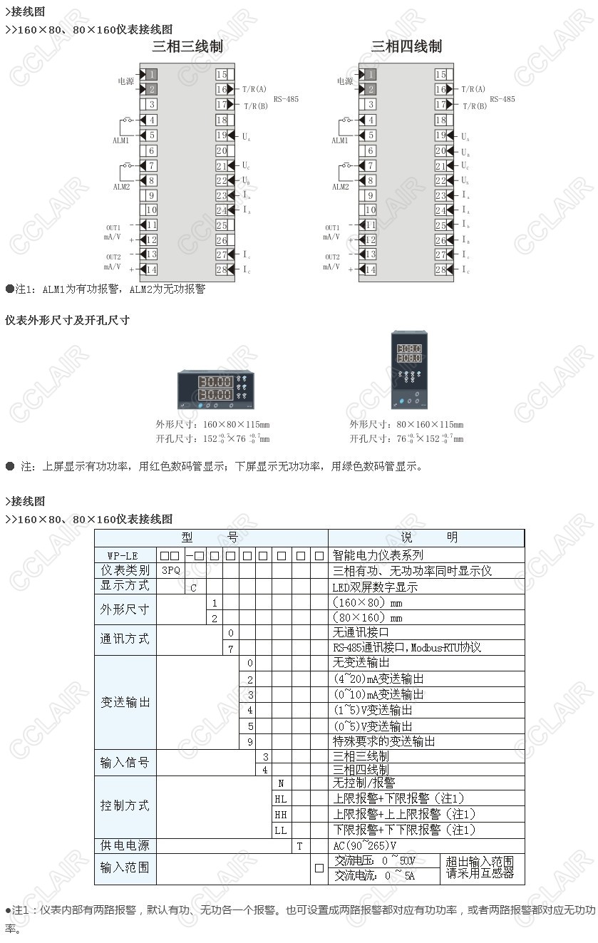 WP-LE3PQ-C1,WP-LE3PQ-C2,智能三相交流有功,無(wú)功功率雙路儀表