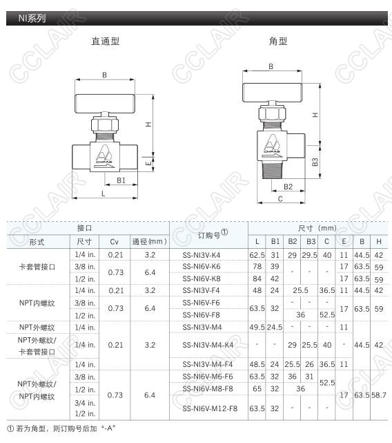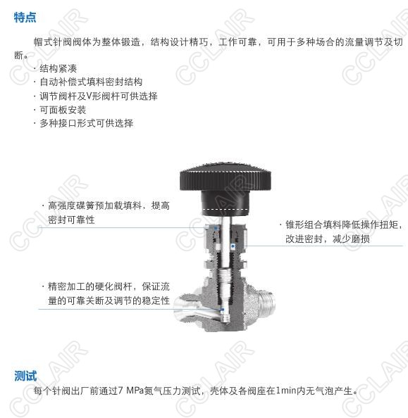 SS-NIP2R-M4-K6-A-SH-P,SS-NI3V-F4-K6-A-SH-P,NIP和NI帽式針閥—不銹鋼管閥件帽式針閥閥體為整體鍛造,結構設計精巧,工作可靠,可用于多種場合的流量調節(jié)及切斷。結構緊湊自動補償式填料密封結構調節(jié)閥桿及V形閥桿可供選擇可面板安裝