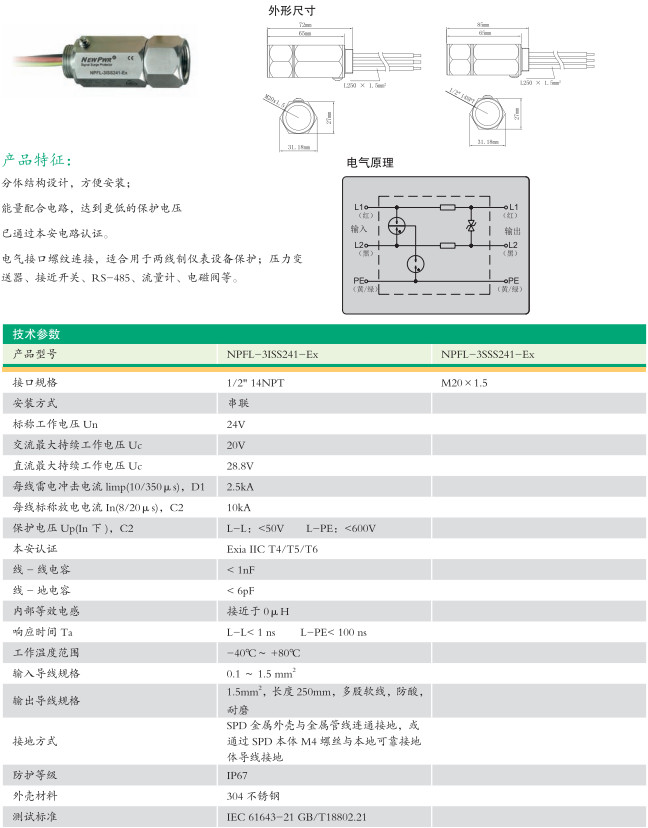 NPFL-3SSS241-Ex,NPFL-3ISS241-Ex,現(xiàn)場安裝型浪涌保護(hù)器(串聯(lián))