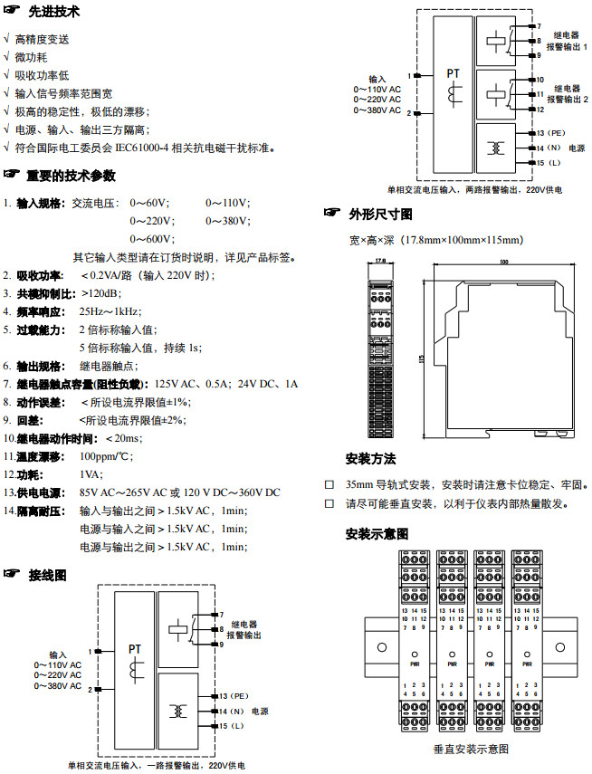 NPDL-0010421,NPDL-0010521,C交流供電單相交流電壓變送器