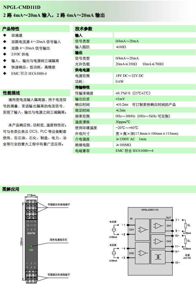 NPGL-CMD111D,電流輸入隔離器