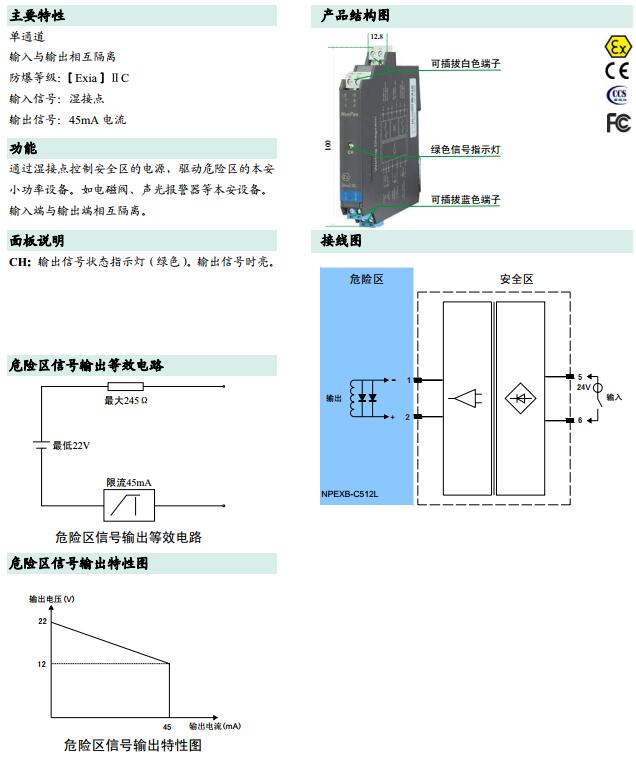 NPEXB-C512L,操作端回路供電安全柵