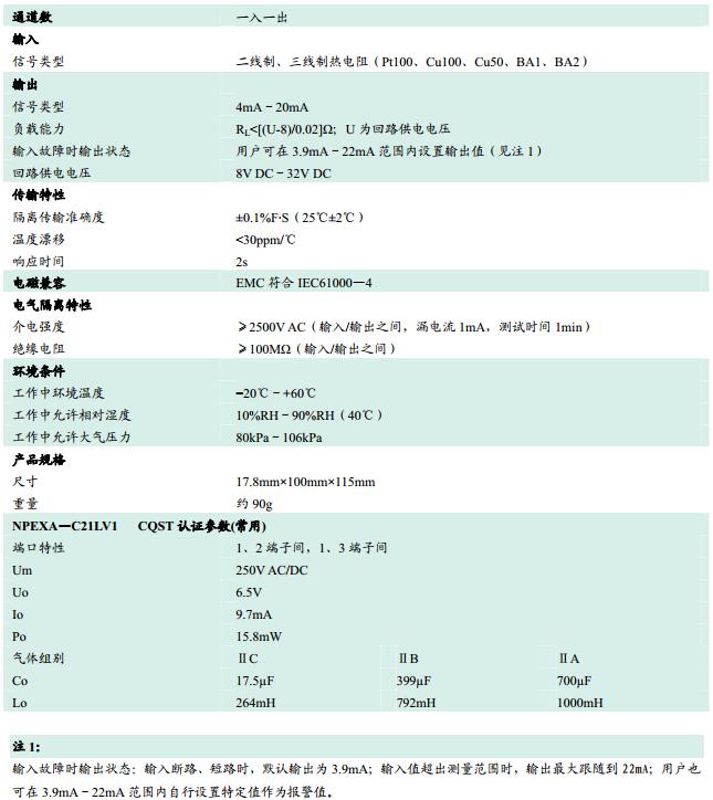 NPEXA-C21L,輸出回路供電隔離式安全柵
