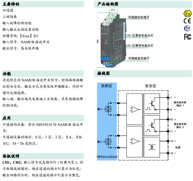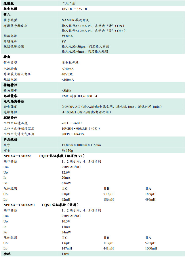 NPEXA-C5D222,NPEXA-C5D222V1,檢測端隔離式安全柵
