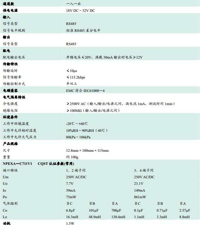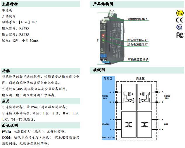 NPEXA-C711,檢測端隔離式安全柵