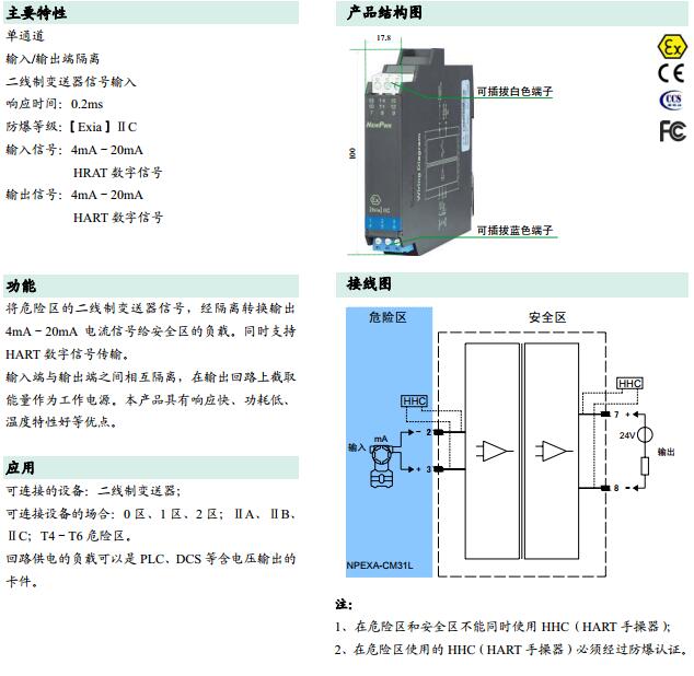 NPEXB-CM31L,NPEXA-CM31L,輸出回路供電隔離式安全柵