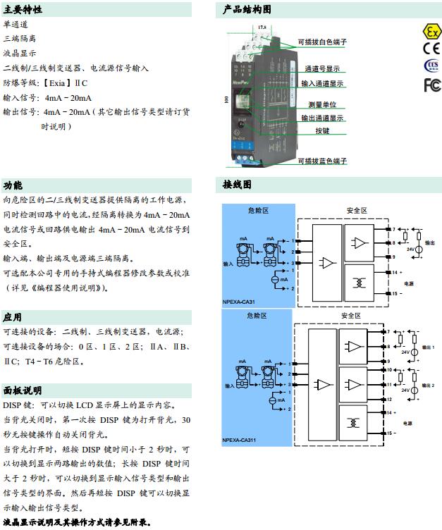 NPEXA-CA31,NPEXA-CA311,檢測(cè)端隔離式安全柵