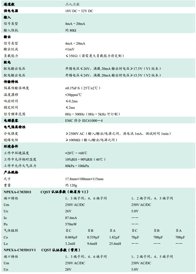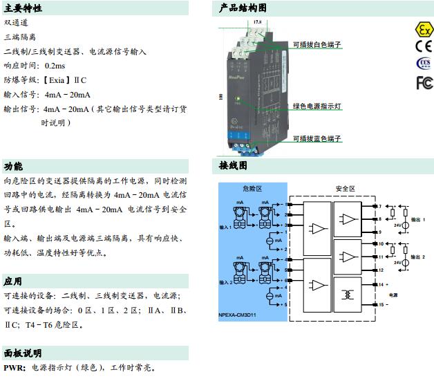 NPEXA-CM3D11,NPEXA-CM3D11V1,檢測端隔離式安全柵