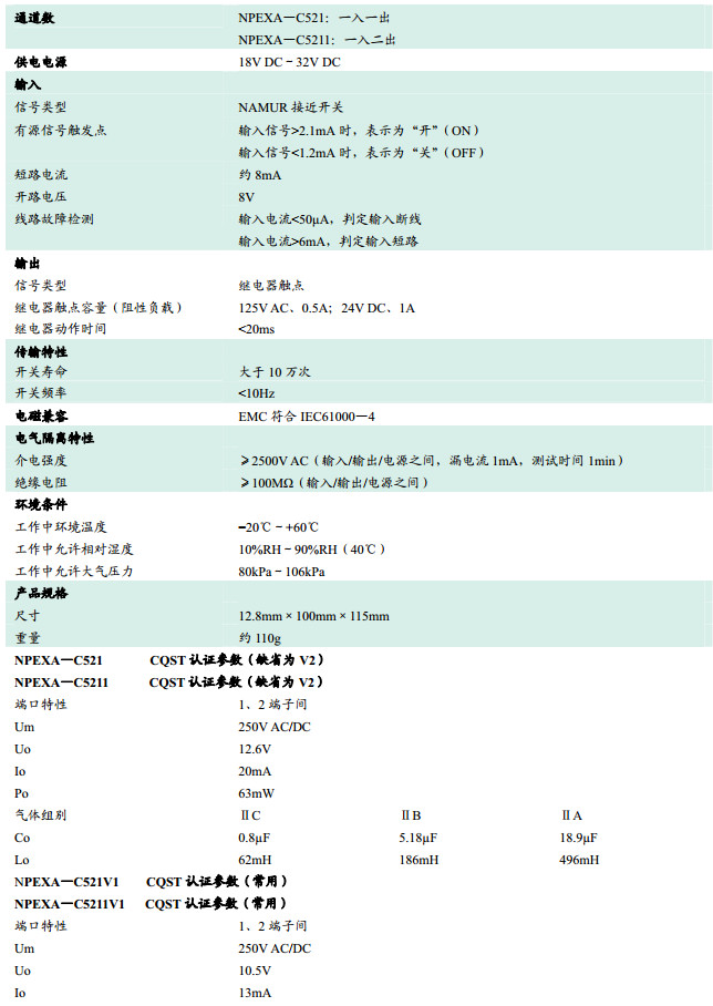 NPEXA-C521,NPEXA-C5211,檢測(cè)端隔離式安全柵
