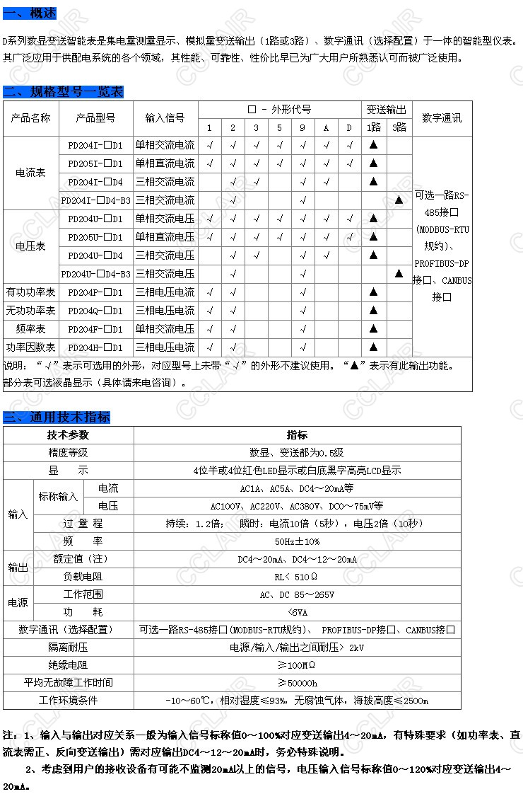 PD204I-DD1,PD204U-DD1,PD204I-3D4,PD204U-3D4,PD204Q-2D1,PD204H-1D1,D數(shù)顯變送智能表