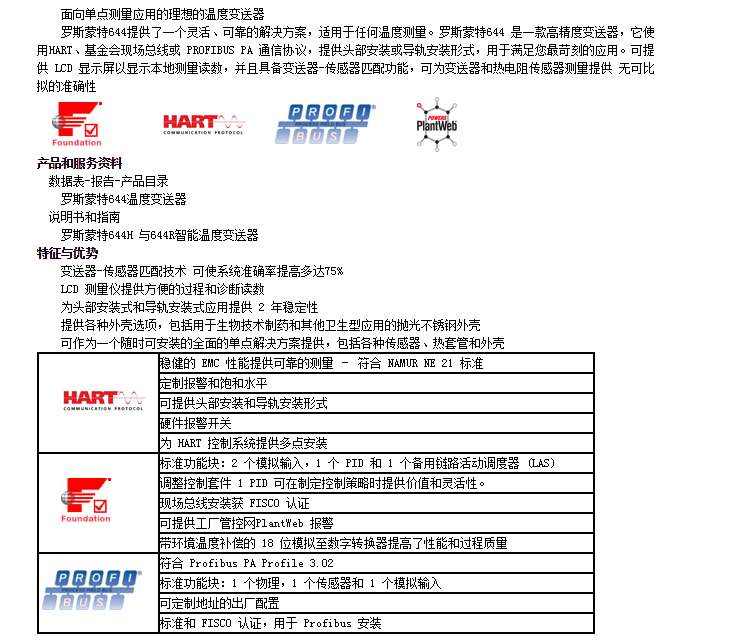 羅斯蒙特644,頭部安裝式和導(dǎo)軌安裝式溫度變送器