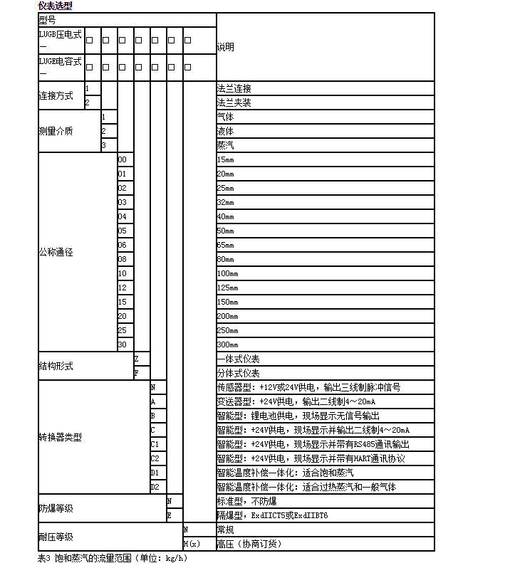 LUGB/E管道式渦街流量計(jì)常用規(guī)格型號(hào)
